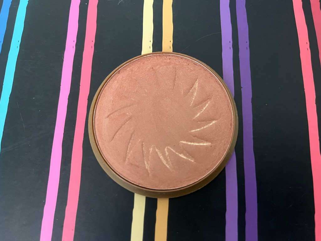 At that time I wasn’t even wearing foundation. I’d experimented with cream to powder and that was the extent of it . So when I wore makeup I swept this shimmery bronze powder that matched my skin tone over my cheekbones and to me it looked good. I wore a warm red blush over my cheeks with this right above it. It was barely detectable aside from the golden shimmer. But that was okay with me. Whatever this shimmery stuff was was shimmering and that meant I was doing something right. 🙂
