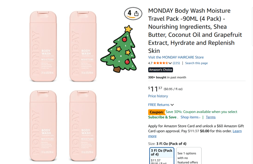 Monday Moisture Body Wash Travel Pack $11.37