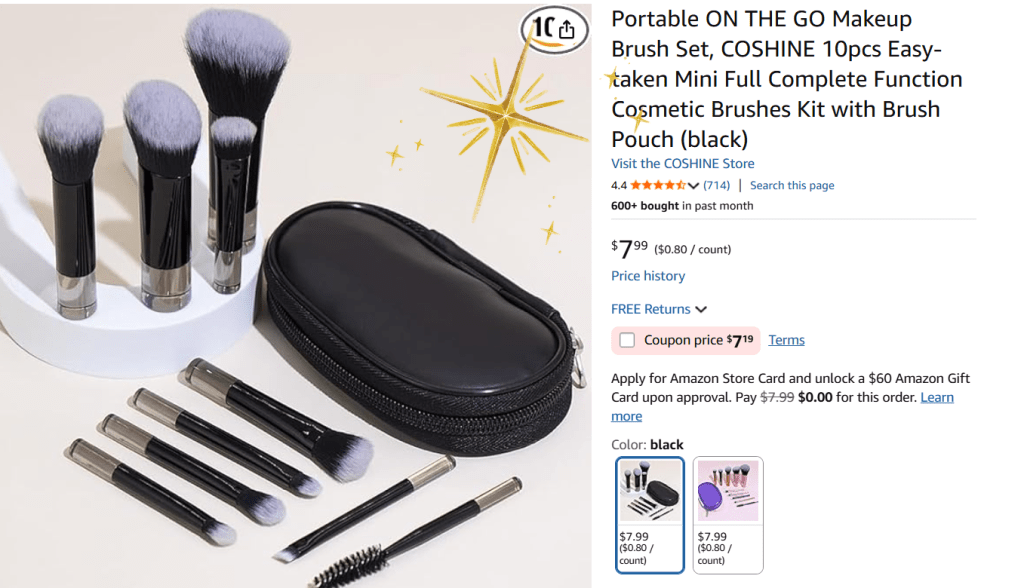Portable ON THE GO Makeup Brush Set $7.99