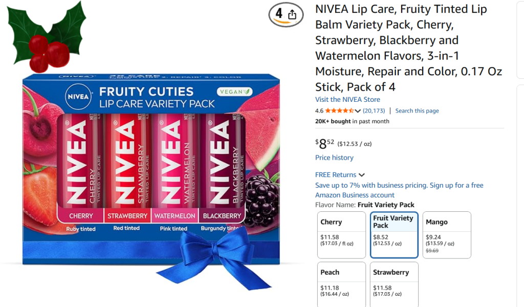 Nivea Lip Care, 4 Pack Set $8.52